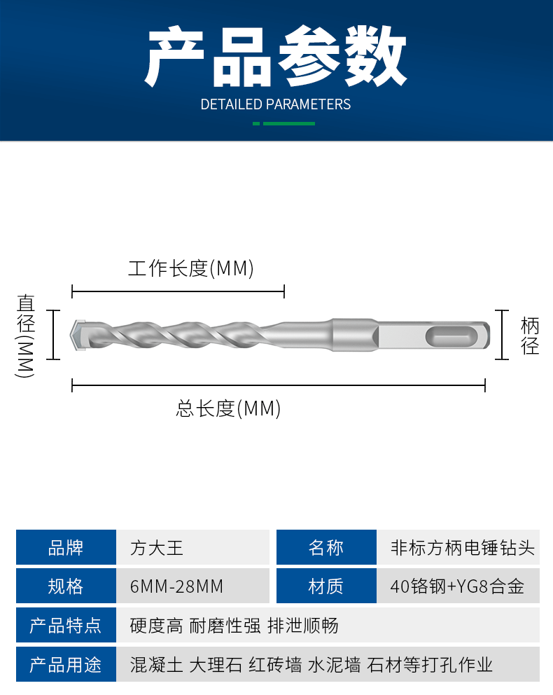非標(biāo)方柄電錘鉆頭